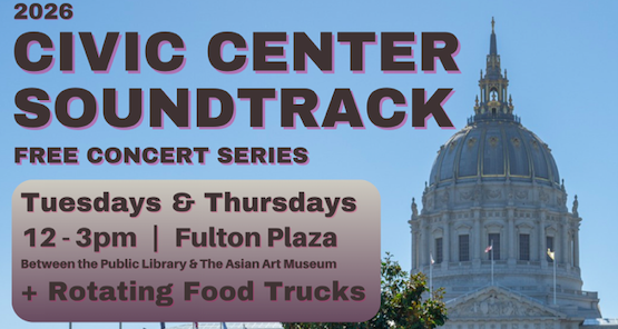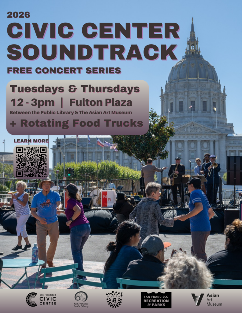 Returning April 14th, Civic Center Soundtrack, a free concert series by Illuminate, takes place at Fulton Plaza between San Francisco Main Library and the Asian Art Museum.
