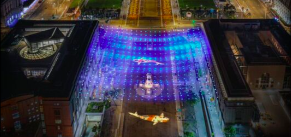 The SPECTRA Showcase is a monthly event featuring artists, musicians, and performers syncing their programming and audio to the LEDs of the SPECTRA Light Sculpture.